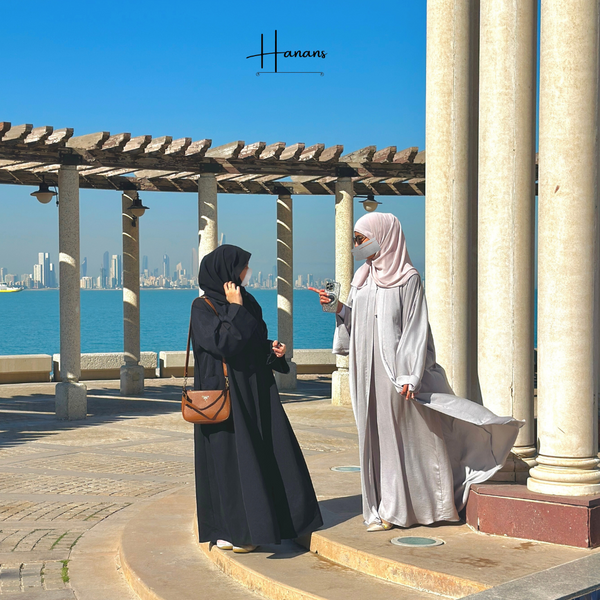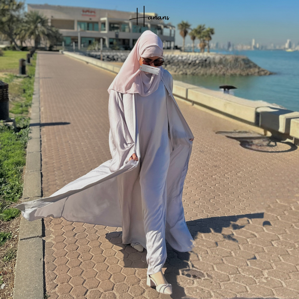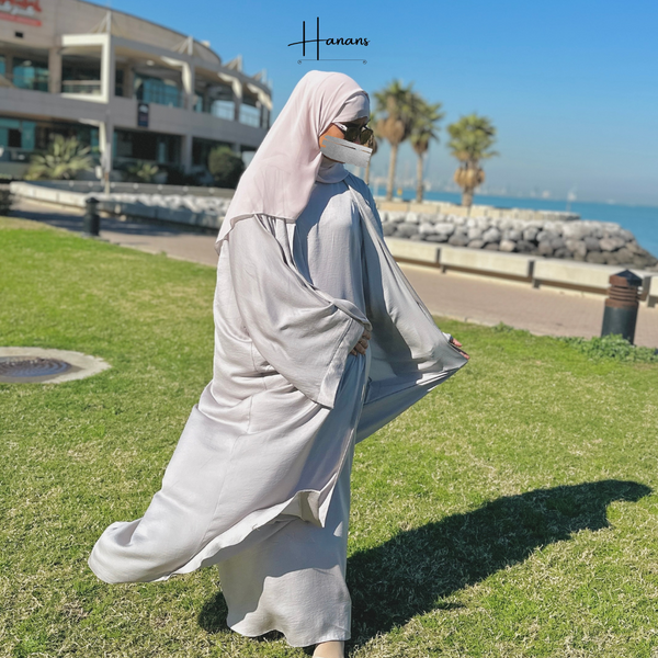 This elegant 2-piece silver abaya is a versatile and stylish addition to your wardrobe, designed with comfort and sophistication in mind.