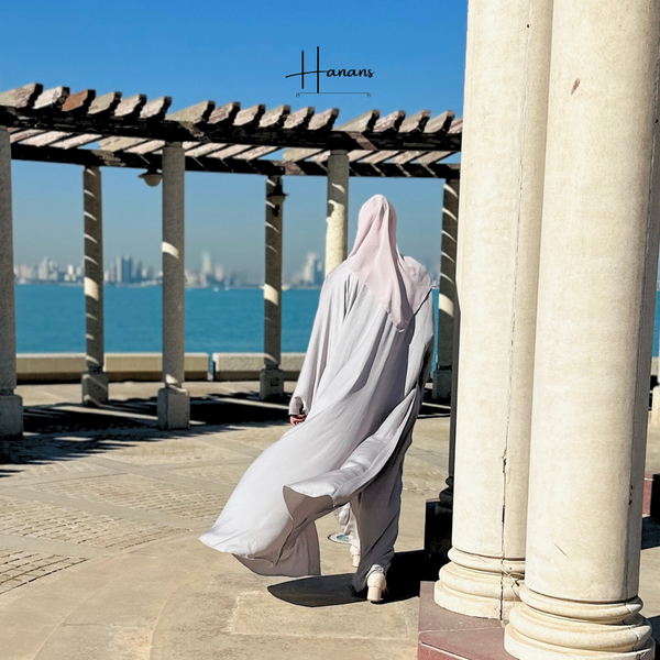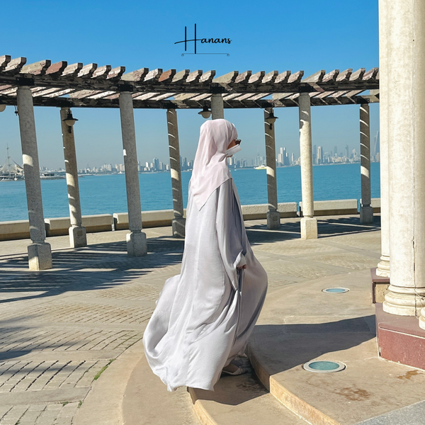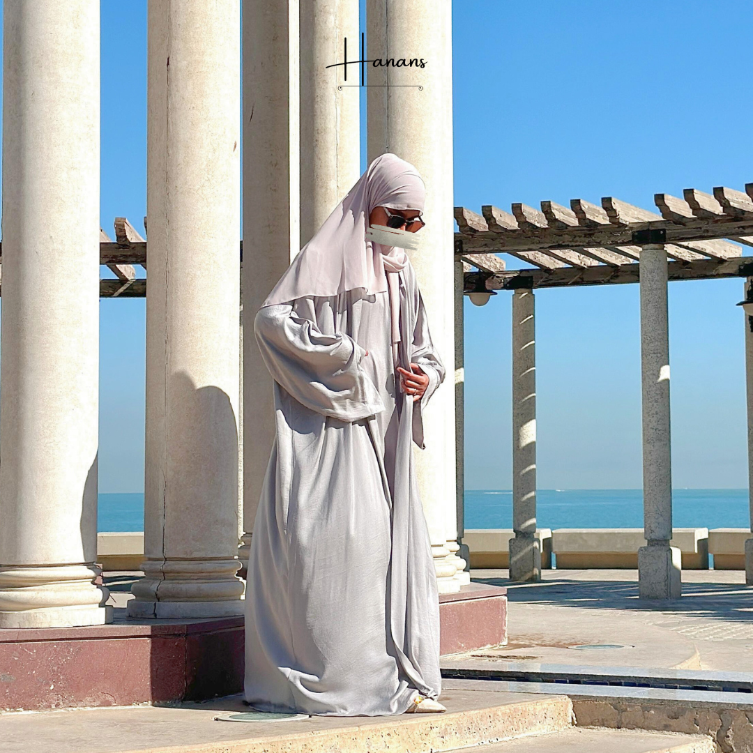 Upgrade your modest fashion collection with this stunning silver abaya, offering a seamless blend of elegance and practicality. Ideal for year-round wear!